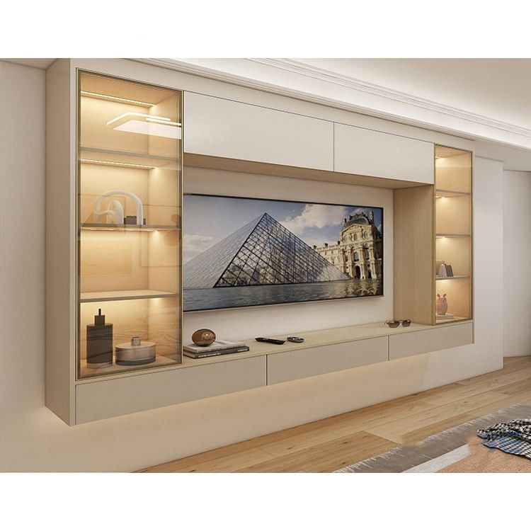 Κύρια δομή: Η κύρια δομή ενός κρεμώντας γραφείου TV οθόνης αποτελείται συνήθως από τους υψηλής ποιότητας πίνακες, όπως το κοντραπλακέ ή το μέσο φύλλο φίμπερ πυκνότητας (MDF). Αυτοί οι πίνακες έχουν την υψηλές σταθερότητα και τη διάρκεια, και μπορούν να αντισταθούν το βάρος των τηλεοράσεων και την πίεση που παρουσιάζεται από τη μακροπρόθεσμη χρήση.