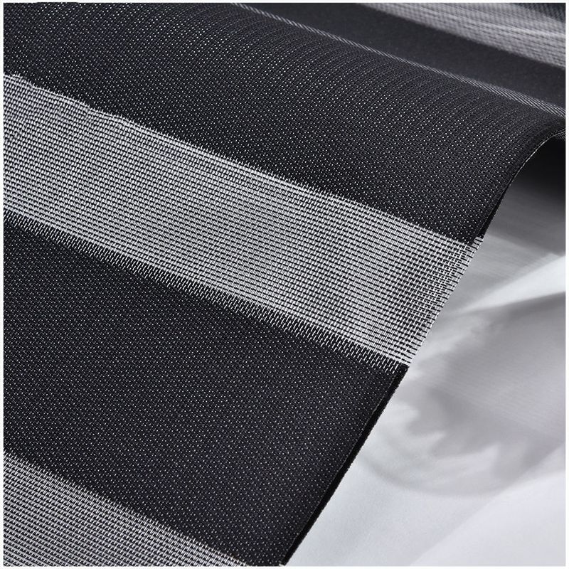 Ύφασμα συσκότισης: Το ύφασμα της κουρτίνας συσκότισης παραθυρόφυλλων χρησιμοποιεί ένα υλικό συσκότισης, συνήθως ένα ύφασμα συσκότισης υψηλής πυκνότητας. Αυτό το ύφασμα μπορεί αποτελεσματικά να εμποδίσει την είσοδο του φωτός του ήλιου και του εξωτερικού φωτός, που παρέχει μια καλύτερη σκιάζοντας επίδραση για το δωμάτιο.