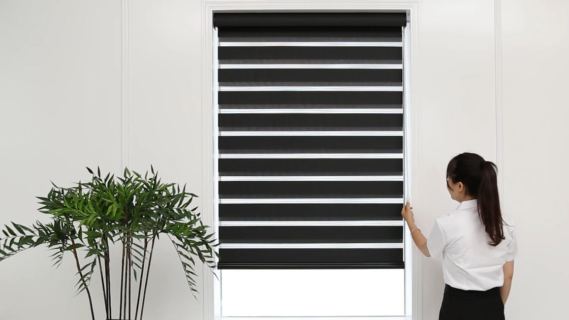 Το μαύρο παράθυρο τυφλώνει τους ασύρματους ζέβεις τυφλούς τυφλούς κυλίνδρων συσκότισης κουρτινών μέρα και νύχτα μηχανοποίησε τη ζέβρ σκιά
